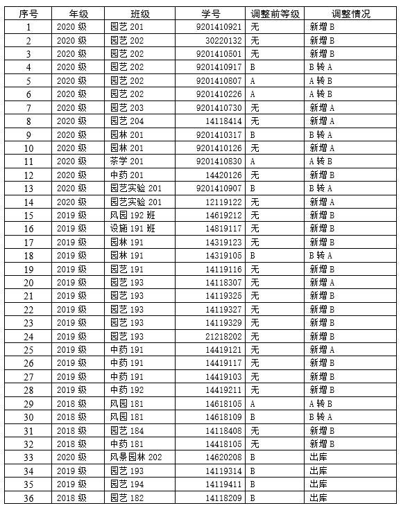 根据《太阳集团官网家庭经济困难学生认定工作实施办法》(校学发〔2019〕184 号)文件精神和《关于做好2021-2022 学年家庭经济困难学生认定工作的通知》(校学函〔2021〕48 号)文件要求,经过学生自主申请、班级评议、学院审核,拟对36名本科生家庭经济困难情况认定做出调整,公示如下:
