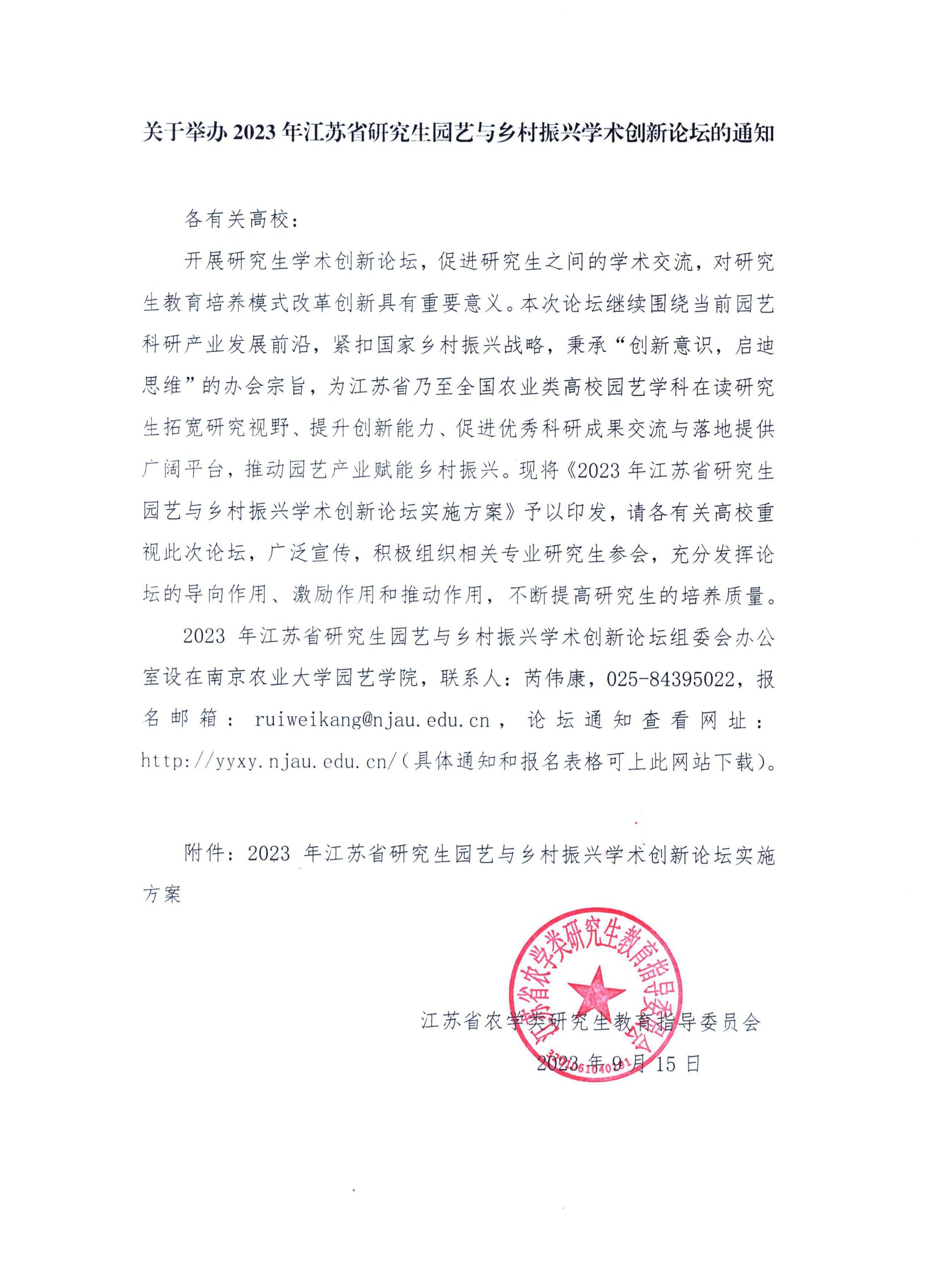 2023年江苏省研究生园艺与乡村振兴学术创新论坛由江苏省农学类研究生教育指导委员会主办,太阳集团官网承办。