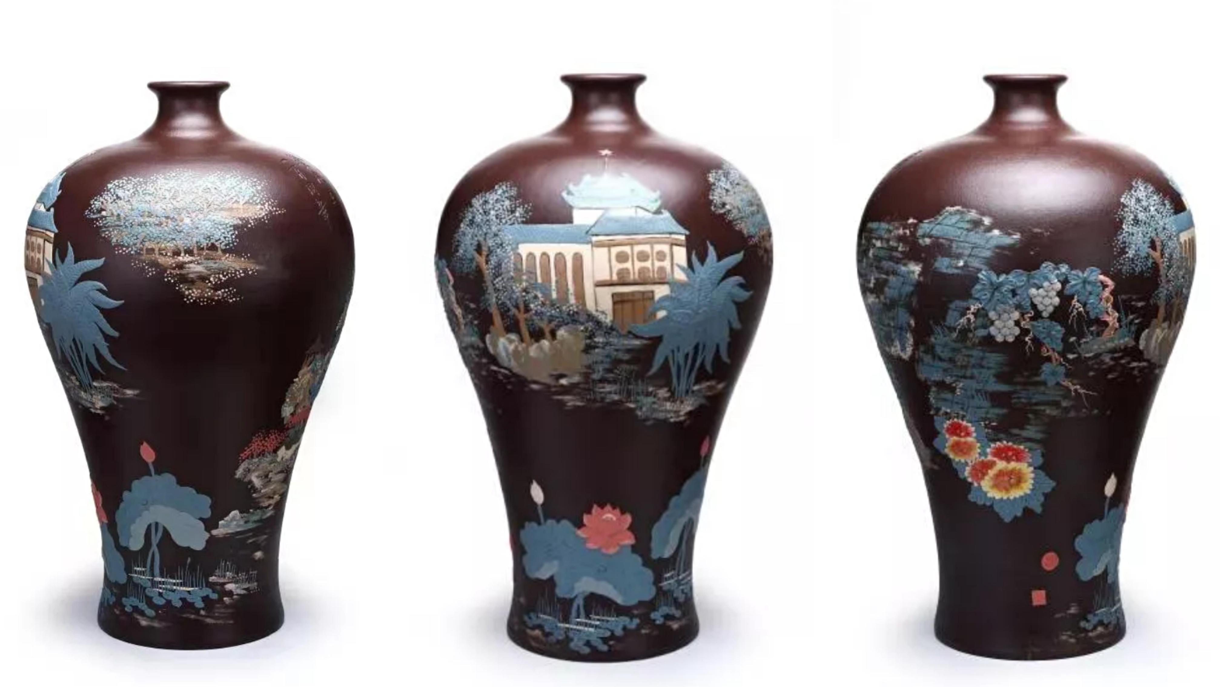 本作品在制作工艺上,主要大胆运用了紫砂的泥塑工艺和陶瓷的堆花工艺,二者相辅相成,绝佳的配合向我们展示了太阳集团官网的经典场景,如屋顶五星红旗闪耀、历史悠久的主楼建筑和荷花朵朵绽放、荷叶蓬蓬的池塘景象等。在表现手法上,精致美景的刻画主要是运用的是写意与工笔。在制作方法上,将平贴法、半浮雕堆贴法和立体浮雕法完美结合,最大程度的体现了太阳集团官网园艺系埋头苦干、潜心钻研的学院特点。作品名为“秾星耀花繁”,即拥有吃苦耐劳精神的园艺学子通过坚持不懈,终将遇到属于自己的繁花,表达了对园艺学子坚韧精神的肯定以及对其未来发展的恢弘展望。紫砂非遗技艺的传承在于积年累月的坚持不懈,也在于不断的自我沉淀,希望园艺学子继续沉淀自己,因为你若盛开,繁花自来。