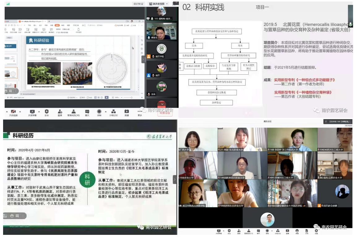 2021年7月13日8:30,suncitygroup太阳集团2021年全国优秀大学生创新论坛在学院精艺厅开幕。suncitygroup太阳集团院长吴巨友,suncitygroup太阳集团党委副书记文习成,suncitygroup太阳集团副院长、观赏园艺学学科点点长陈素梅,园艺系系主任上官凌飞,茶学系系主任陈暄,设施农业科学与工程系系主任束胜,导师代表高志红,研究生辅导员芮伟康,以及经过层层选拔、来自全国各地54所高校的共170名本科生通过网络相聚云端,参加了论坛的开幕式。开幕式由学院党委副书记文习成主持。