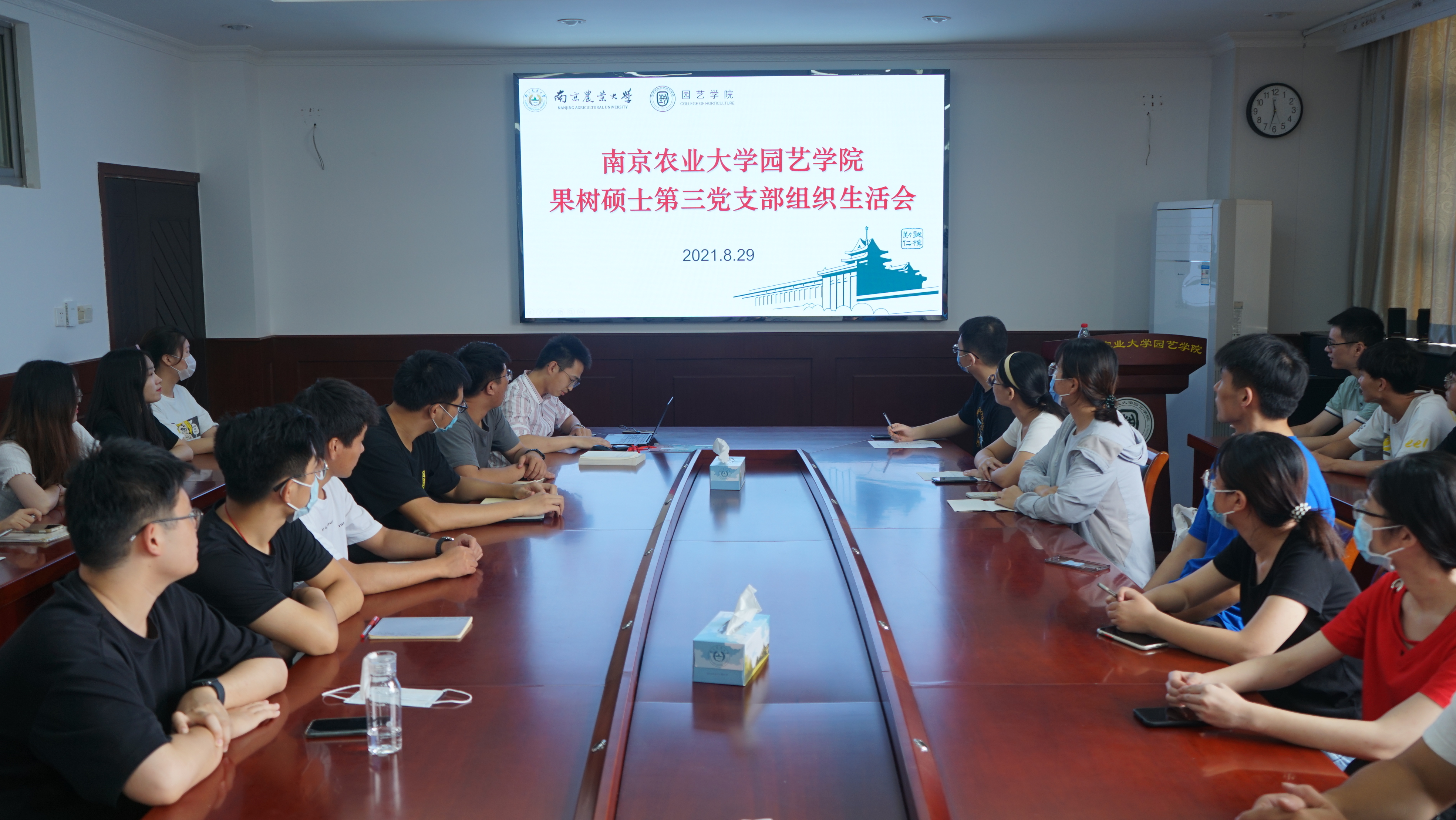 2021年8月29日,果树硕士第三党支部党史学习教育专题组织生活会在生科楼b4003举行,29名党员参与了本次会议,会议由党支部书记芮伟康同志主持。
