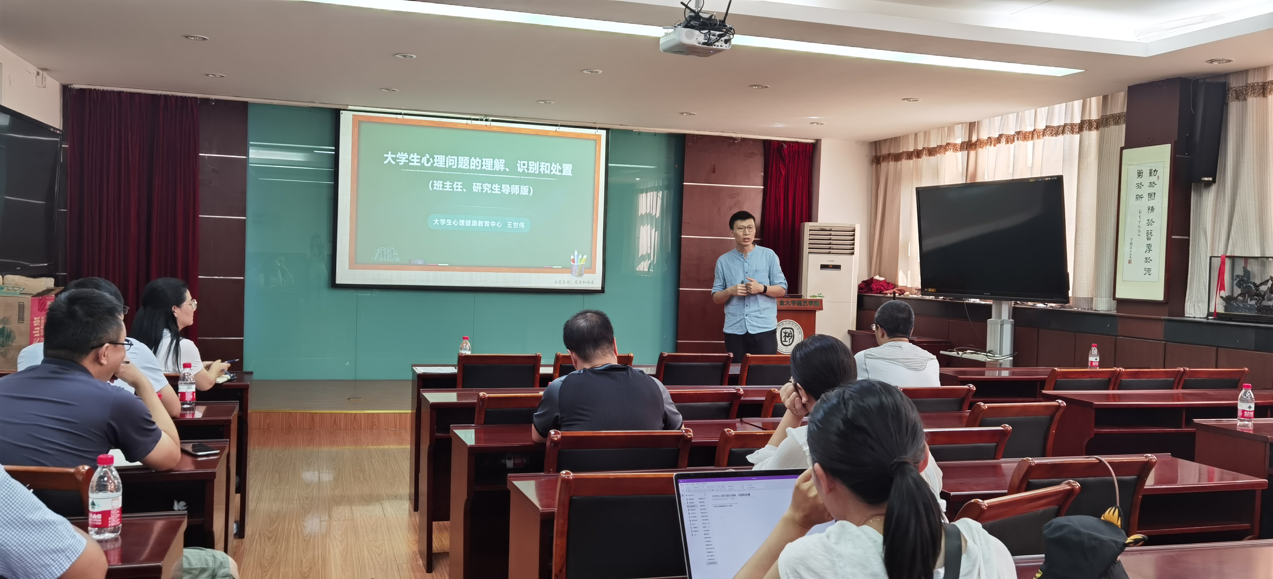 为加强对大学生心理健康的指导,suncitygroup太阳集团于2021年9月23日下午在生科楼B4010举办“大学生心理问题的理解、识别和处置”的主题培训讲座,学工处心理中心主任王世伟受邀开讲。学院部分本科生班主任和研究生导师参加讲座,讲座由辅导员鲁月主持。