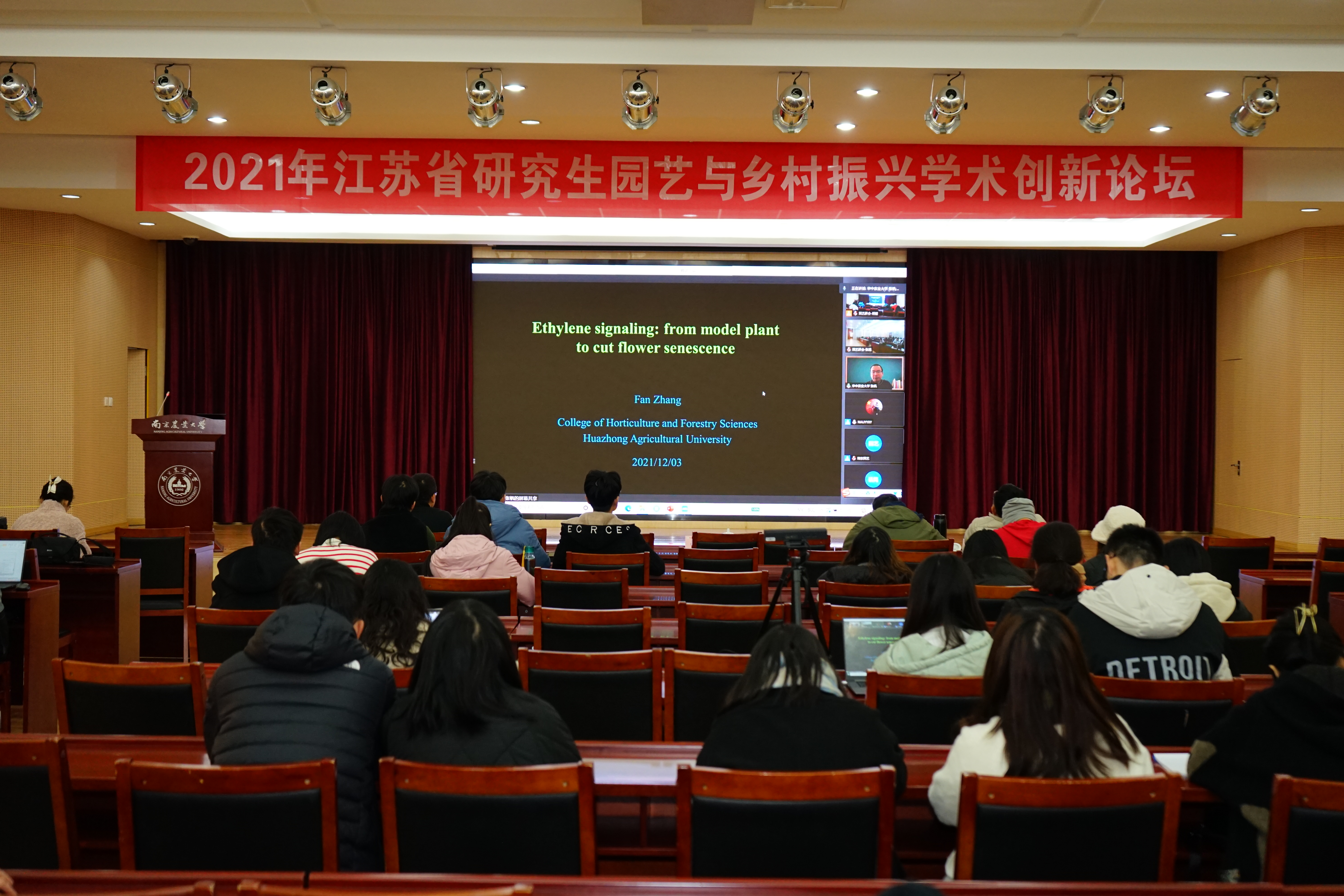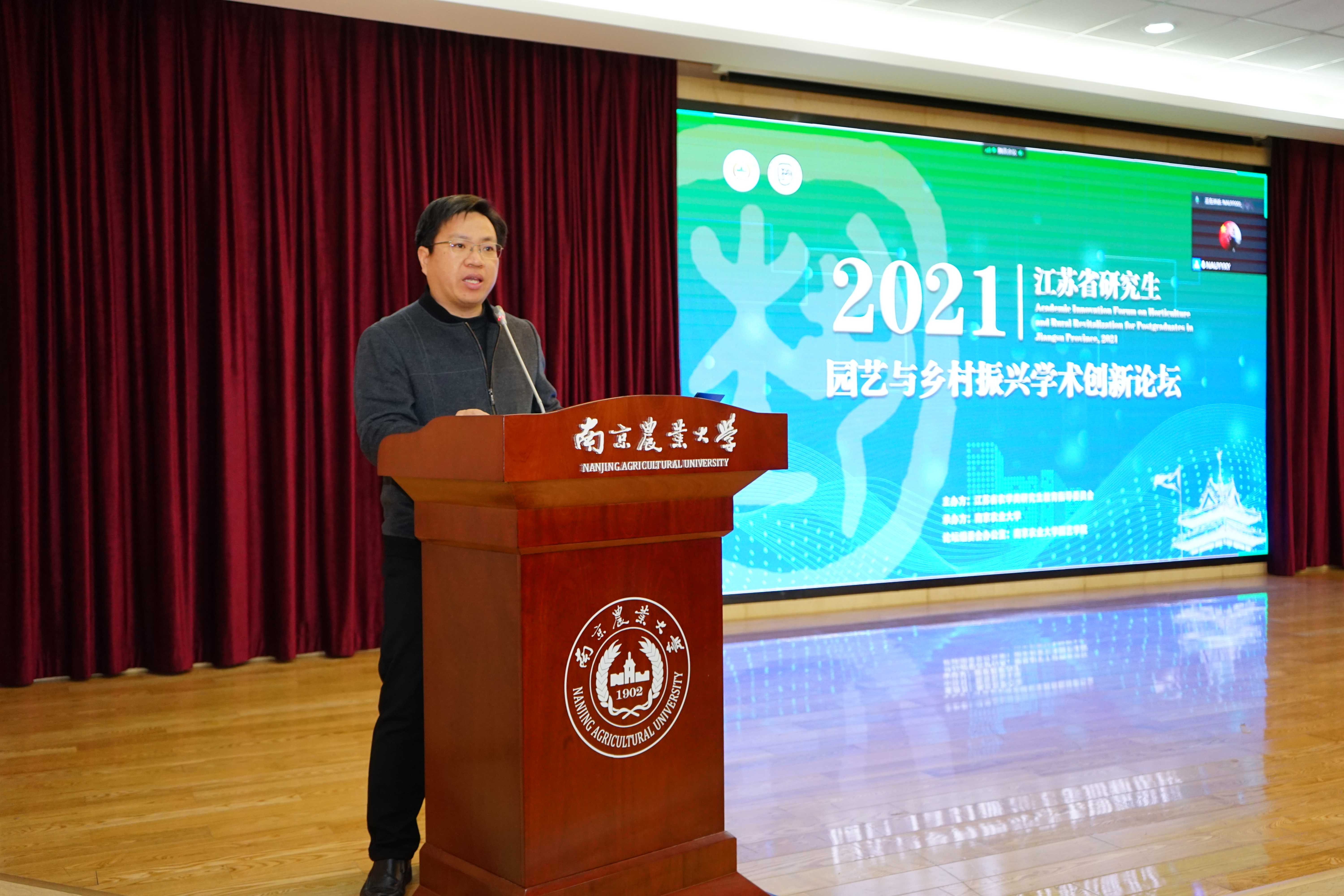 2021年12月3日,由江苏省农学类研究生教育指导委员会主办、太阳集团官网承办的2021年江苏省研究生园艺与乡村振兴学术创新论坛在我校成功举办,太阳集团官网suncitygroup太阳集团院长吴巨友、太阳集团官网党委研究生工作部副部长林江辉、太阳集团官网suncitygroup太阳集团党委副书记文习成、太阳集团官网suncitygroup太阳集团教授王利凯、园艺系系主任上官凌飞、设施农业科学与工程系系主任束胜、suncitygroup太阳集团副教授王海滨及论坛参会人员参与开幕式,开幕式由文习成主持。