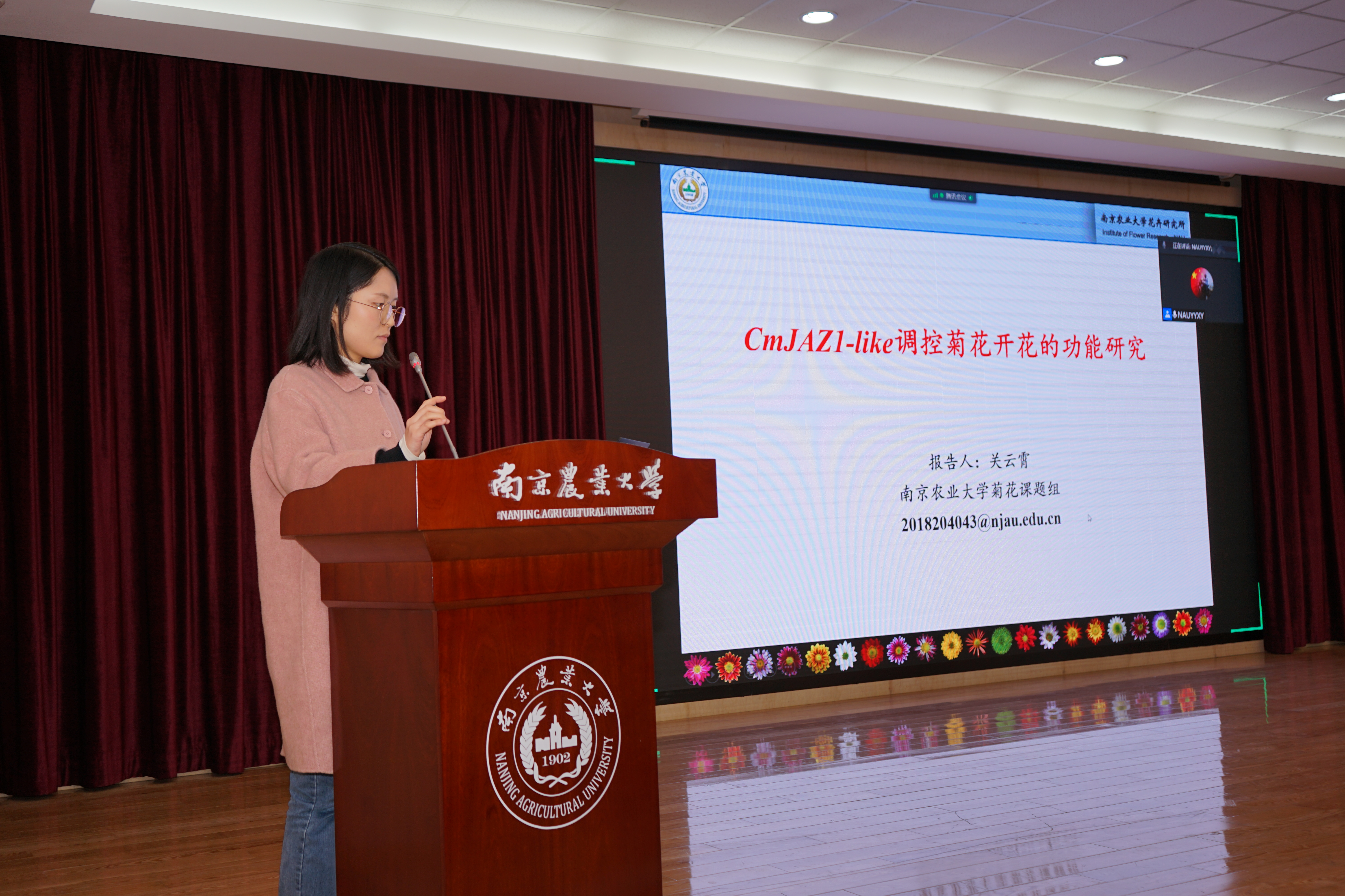 下半场报告由太阳集团官网束胜副教授主持,太阳集团官网徐素娟博士、太阳集团官网黄霄博士、沈阳农业大学董诗瑶博士以及沈阳农业大学潘好斌博士带来了题为《The transcription factor CmERF12 and CmLEC1 regulate the seed-setting rate in chrysanthemum hybridization breeding》、《基于人工神经网路模型预测和优化枇杷果实品质》、《大白菜雄性不育突变基因BrMS1的克隆与鉴定》、《Muiti-microscopy technique combined with FT-IR spectroscopy reveals the histological and biochemical causes leading to the difference in fruit texture of oriental melon(Cucumis melo var.makuwa Makino)》的精彩报告,展现了园艺领域博士研究生的科研创新能力。