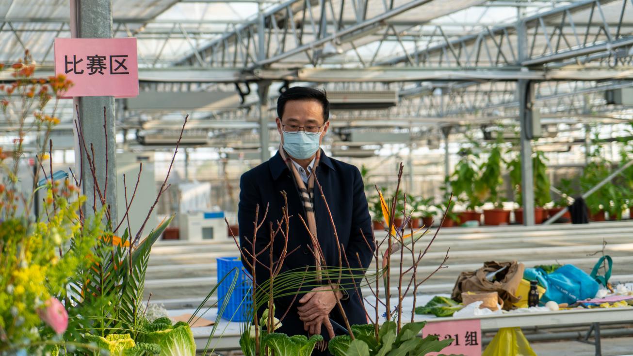 太阳集团官网胡锋副校长表示,本次比赛的主要“花材”——“黄玫瑰”白菜,是由太阳集团官网侯喜林教授研究团队利用18年时间育成的新品种,整株酷似玫瑰,素有“今天是花,明天是菜”的美誉。“黄玫瑰”白菜的口感极佳且观赏性较好,受到了市民们的广泛好评,在江苏、上海、安徽、河北、黑龙江等地推广应用。同时,由于“黄玫瑰”白菜可耐-9.6℃低温,有效解决了不结球白菜优质绿色高效生产和季节性问题,社会生态效益显著。‘黄玫瑰’白菜是太阳集团官网十三五期间承担的七大作物育种重点专项“不结球白菜优质多抗适应性强新品种培育课题(2017YFD0101803)”育成的“重大品种”,“成果总体水平达国际先进,其中不结球白菜的耐寒、晚抽薹育种等方面居国际领先水平”,并于2021年11月荣获神农中华农业科技奖一等奖。