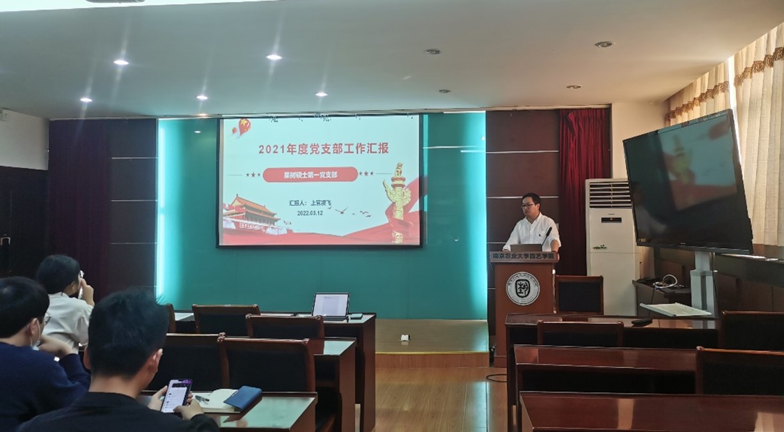 接下来,党支部书记上官凌飞同志进行了党支部2021年度述职汇报,对党支部在过去一年中的工作情况进行了系统而全面的总结。在过去一年里,党支部工作特色鲜明,坚持理论学习不放松,建设了学习型党支部;教师学生齐发力,党建带动了学术能力提升;党团共建齐发展,研究生带动了本科生向党组织靠拢。他表示,在今年的工作中,要重点从提升理论素养、加强支部规范化建设、密切联系群众、增强支部成员凝聚力四方面进行支部建设。