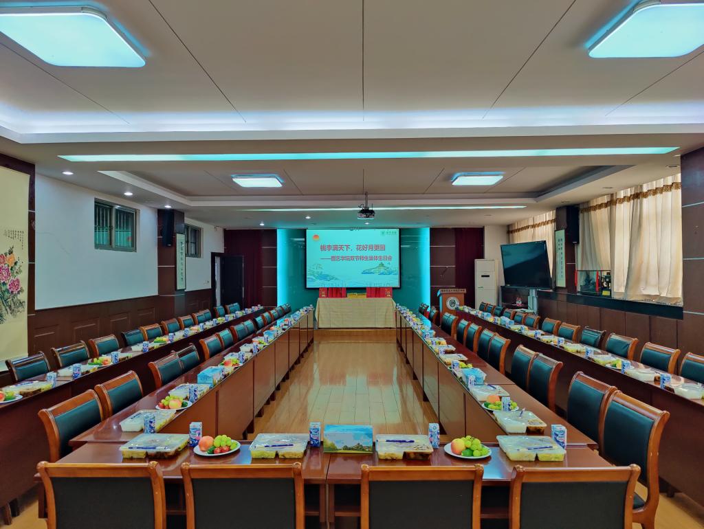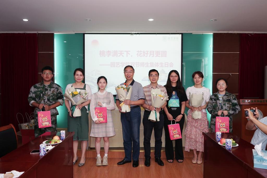 用餐结束后,学院领导和寿星师生们一起切蛋糕、分月饼,同学们把提前准备好的鲜花送给老师,祝福老师们教师节快乐,老师们也为每位同学精心准备了小礼品,希望他们的大学生活能够多姿多彩、充满爱意。