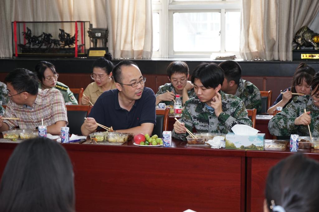 参加完上午的训练,穿着军训服的周添添便受邀来到了学院会议室,今天是她的18岁生日,和她一起赴约的,还有同样是9月过生日的一群老师和同学。一进门,饭菜香、花果香扑面而来,还有早就准备好的蛋糕和月饼,原来,这是太阳集团官网suncitygroup太阳集团为他们准备的一场特殊的“园味”团圆饭。