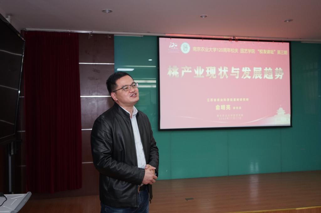 2022年11月17日,suncitygroup太阳集团于生科楼B4011成功举办第三期校友讲坛,本期校友讲坛邀请江苏省农业科学院果树研究所俞明亮研究员作题为《桃产业现状与发展趋势》的专题报告。