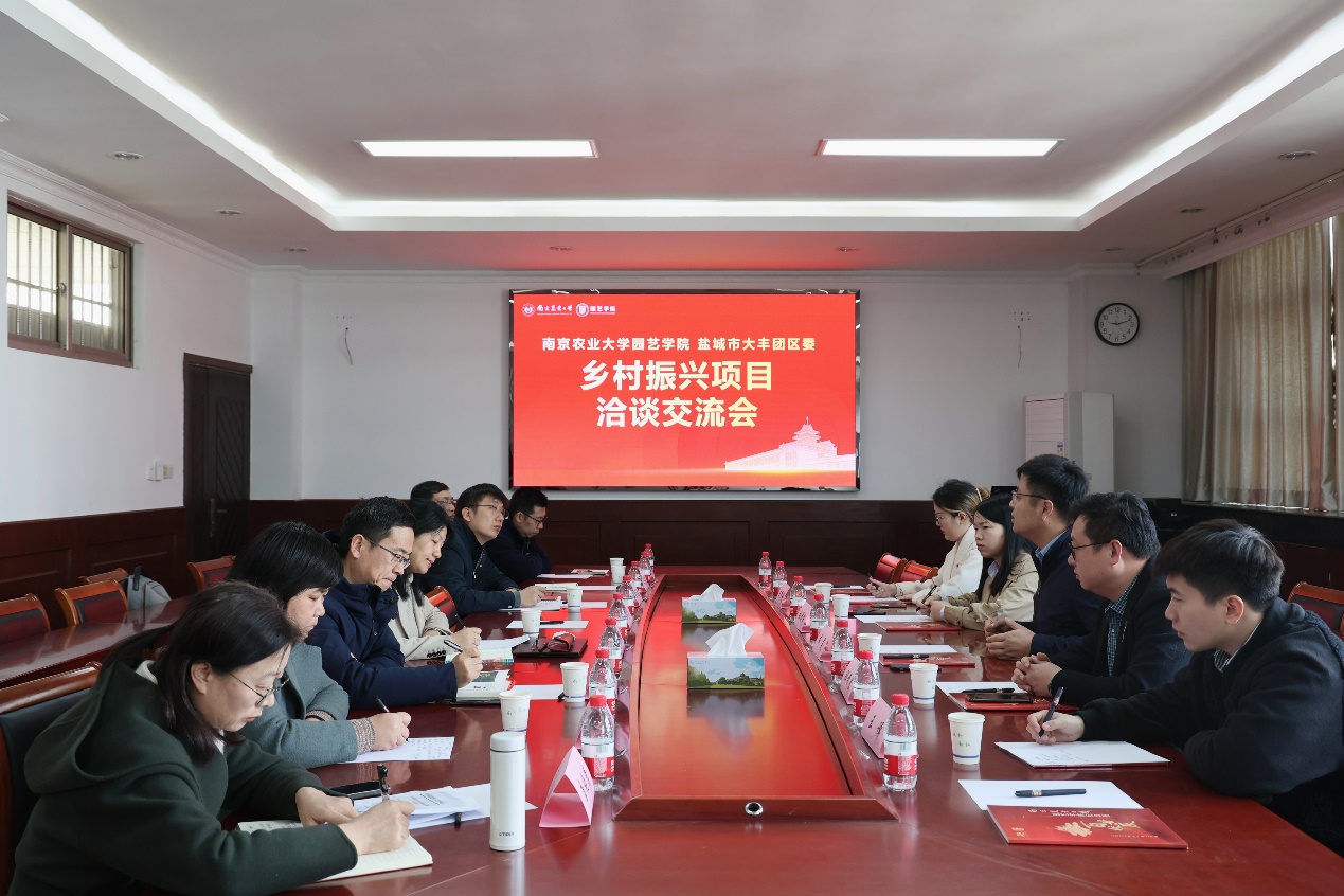 4月7日上午,共青团盐城市大丰区委员会书记茆昊一行来学院开展乡村振兴项目洽谈交流活动。大丰团区委副书记束瑞、青发部部长张源倍、大中街道红花村党总支书记顾希良、大中街道农业农村局王梦婷等陪同来访。学院院长陈素梅、王长泉教授、滕年军教授、徐迎春教授、管志勇教授、唐晓清教授、魏家星副教授及部分学科教师代表等参加交流座谈。会议由陈素梅主持。