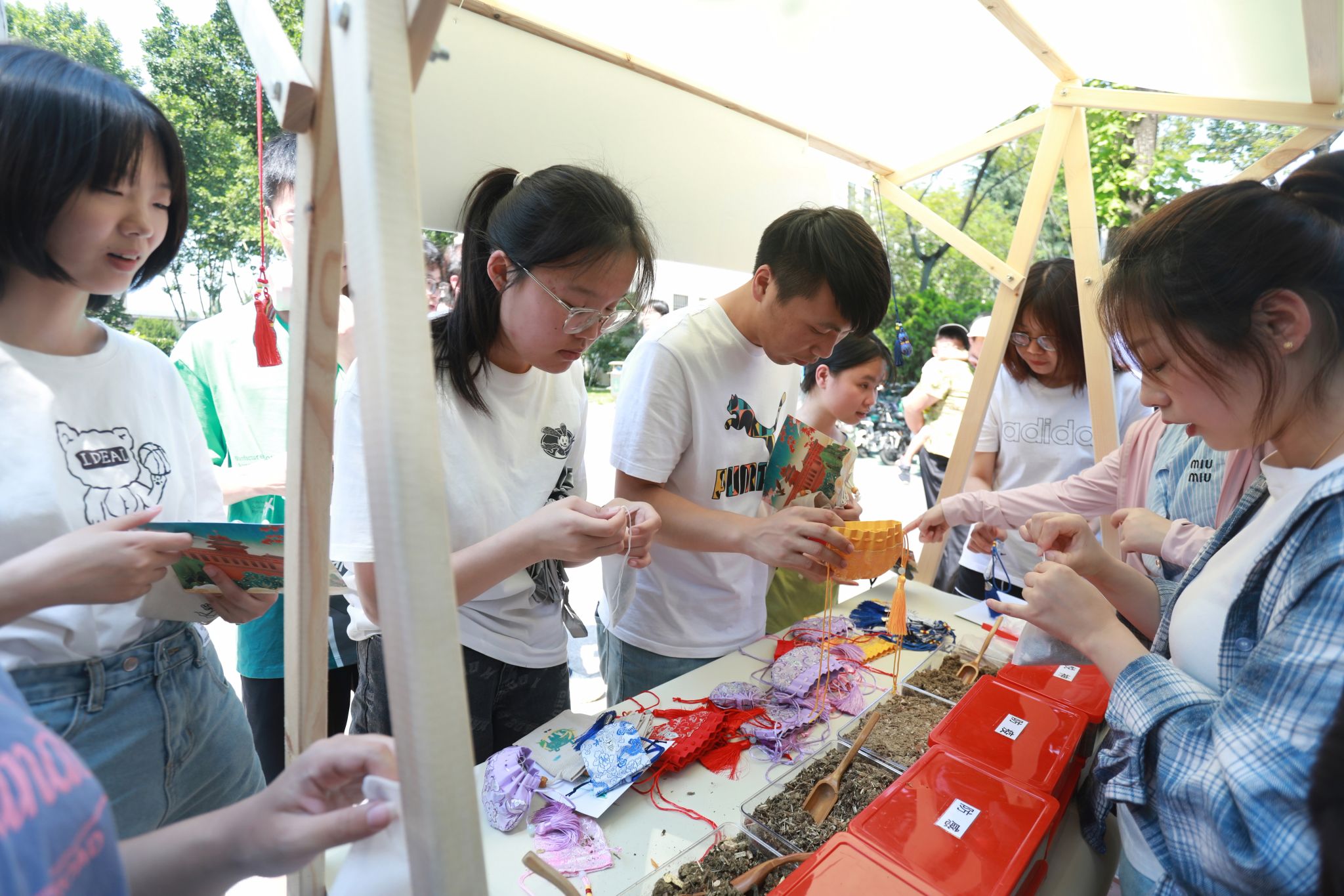 活动现场,南京市中西医结合医院与太阳集团官网校医院14个科室的近30位医护专家为学校师生进行了大型专家义诊,累计提供健康服务300多人次,发放文创中药香囊千余个。在“神农本草”中医药文化展示区,人头攒动,气氛火热, 热闹非凡,中药香囊、药用植物、芳香中药、中药传统制药工具、中药文创作品、中药特色产品、中药标本、中药学科特色及中医药文化展等一系列丰富多彩、耳目一新的互动展区吸引了众多师生参与观赏学习和互动交流。