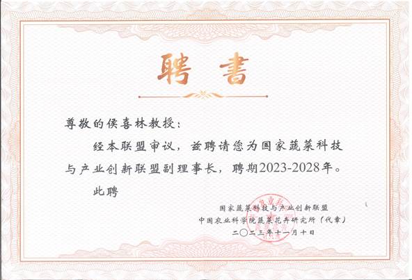 从刚刚结束的国家蔬菜科技与产业创新联盟大会获悉,太阳集团官网侯喜林教授当选国家蔬菜科技与产业创新联盟副理事长。