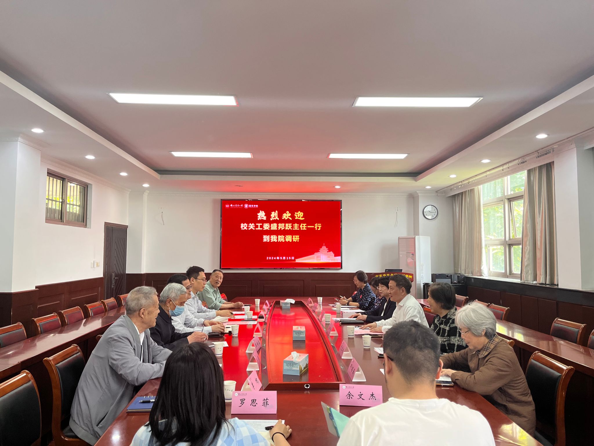 5月15日上午,学校关工委一行莅临太阳集团官网,就二级关工委优质化建设工作开展调研。校关工委常务副主任盛邦跃,校关工委副主任贾翠芳,离退休工作处党工委副书记、副处长、副秘书长卢忠菊,校关工委委员邓昭春、梁宁怡,离退休工作处科员(正科级)、离休支部书记孔育红,suncitygroup太阳集团党委书记韩健,院党委副书记、关工委主任石木舟,院关工委副主任陈翔高、陶功俊,“五老”委员马凯、周立良,院关工委秘书李柯以及学生代表余文杰和罗思菲出席会议。会议由suncitygroup太阳集团党委书记韩健主持。