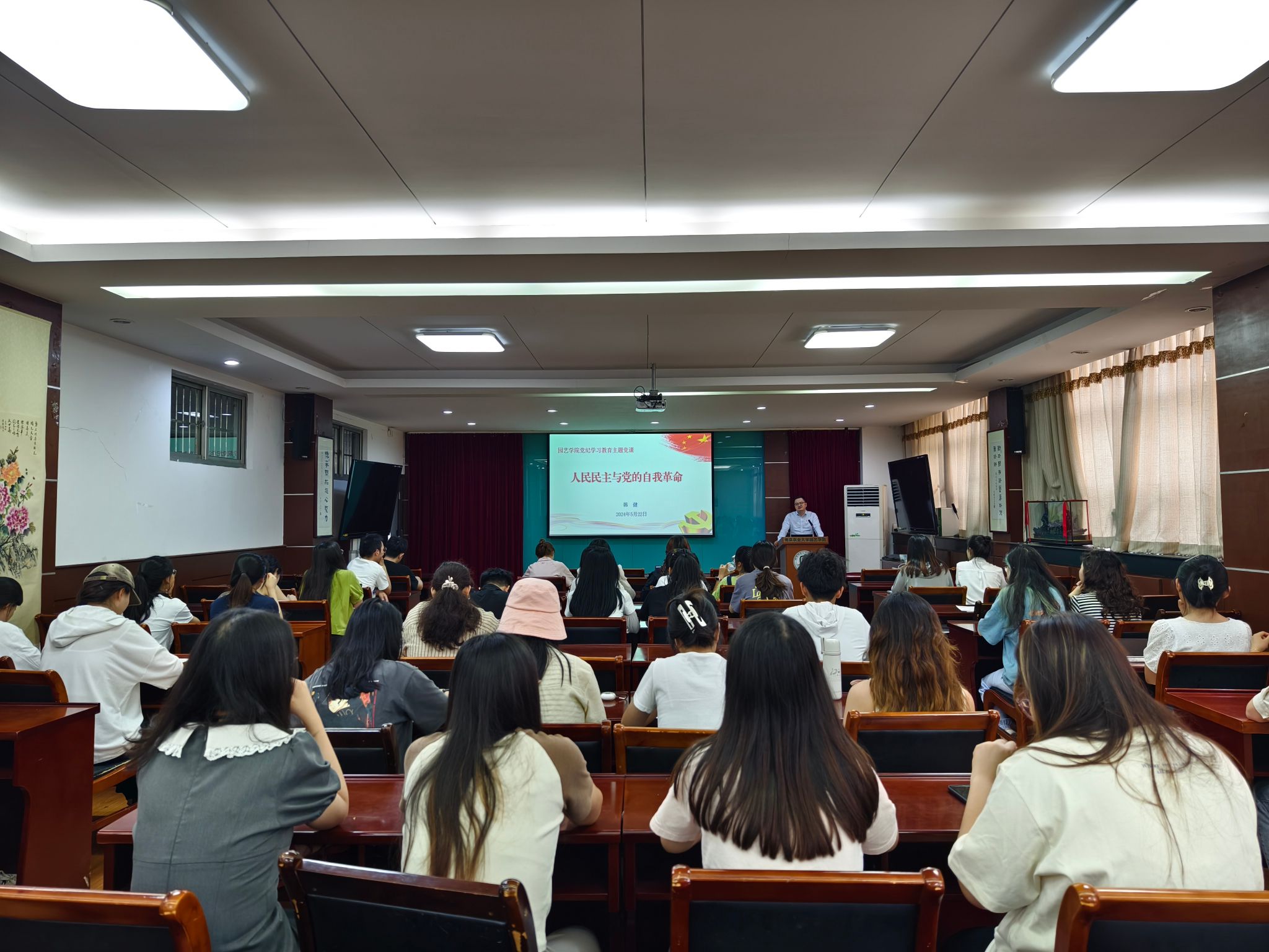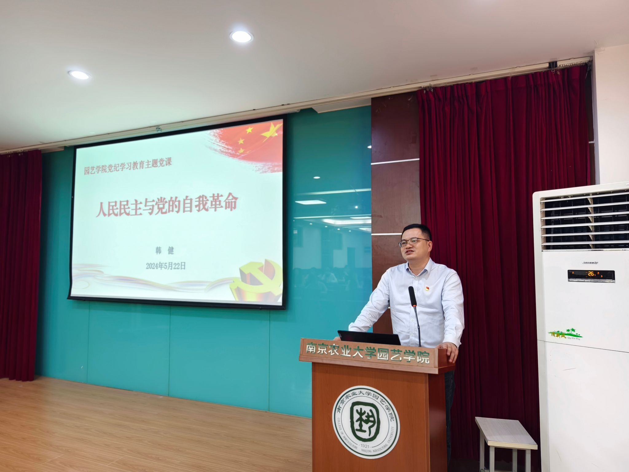 5月22日下午,suncitygroup太阳集团党纪学习教育书记讲党课活动在生科楼B4011举办。suncitygroup太阳集团党委书记韩健作《人民民主与党的自我革命》党纪学习专题辅导报告,果树专硕研究生党支部与园艺专业本科生党支部全体成员参加学习。
