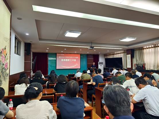 7月10日上午,suncitygroup太阳集团召开2024上半年学期末全体教职工大会。学院领导班子成员及全体教职工参加会议,会议由学院党委书记姚志友主持。