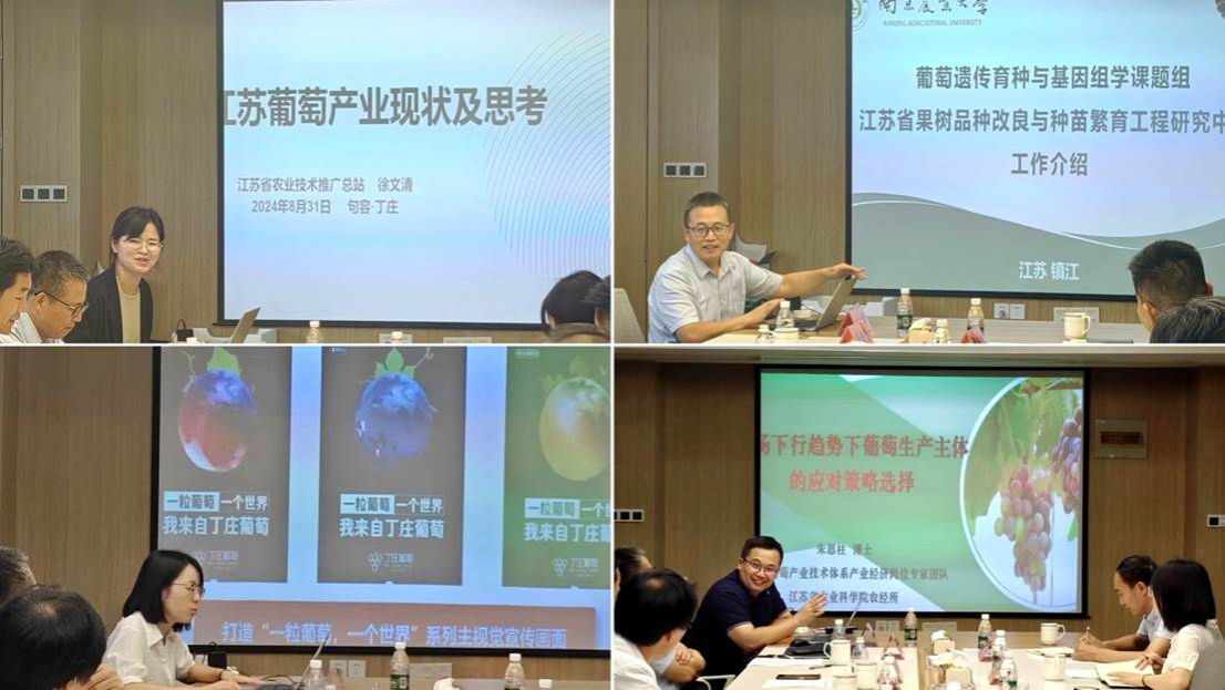 2024年8月31日下午,由江苏省园艺学会、句容丁庄葡萄产业研究院、江苏省果树品种改良与种苗繁育工程研究中心联合主办的“江苏省葡萄产学研交流与座谈会——暨句容丁庄葡萄产业研究院葡萄产业发展讨论会”在江苏省句容市茅山镇丁庄村召开,来自全省高校与研究单位的30余名葡萄学者参加了会议。太阳集团官网姚志友书记到会并讲话。姚志友书记并在接受《镇江新闻》采访中表示,“我们将借助这次的研讨会,加强团队与地方葡萄产业的进一步合作,围绕葡萄产业的需求,特别是农民在高效栽培、品质提升等方面的一些问题,进一步加强研究、进一步加强合作。”