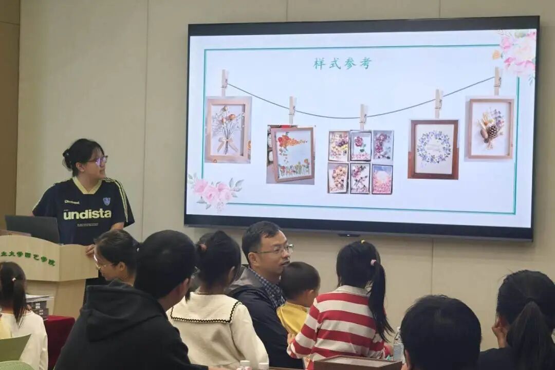 随后在青野手工社的耐心指导下,校友与孩子们一同发挥想象力,精心挑选、设计、粘贴,将一朵朵风干的花草定格在相框中。现场气氛温馨而专注,大手与小手的默契配合,不仅创作出了一幅幅独一无二的艺术作品,更编织了一段段难得的亲子协作回忆。