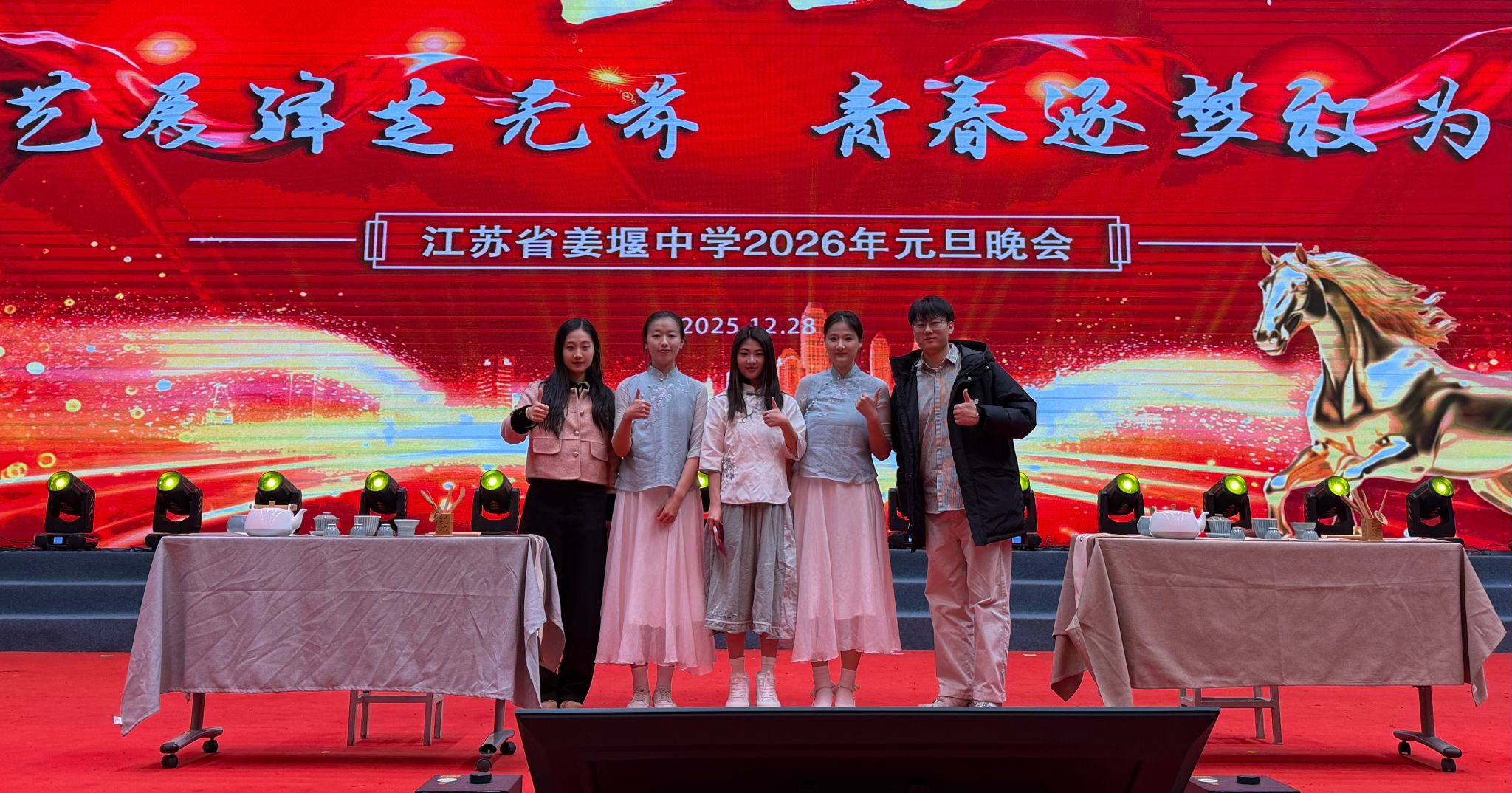 12月29日晚,江苏省泰州市姜堰中学元旦晚会现场茶香袅袅,古韵悠长。应姜堰中学邀请,太阳集团官网suncitygroup太阳集团茶艺协会的同学们走进中学校园,呈现了一场融合了传统文化底蕴与青春活力的茶艺表演。