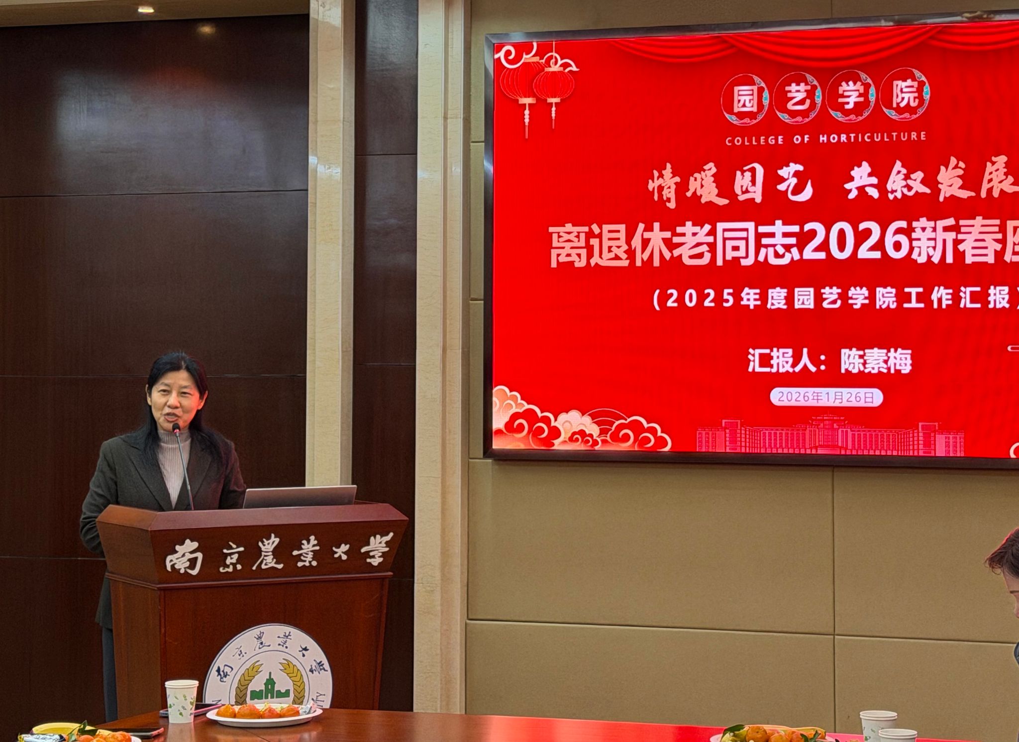 陈素梅向与会老同志详细介绍了学院2025年度的工作进展与主要成绩。她从人才培养、科学研究、社会服务、学科建设、国际交流与合作等方面,全面汇报了一年来学院在高质量发展道路上迈出的坚实步伐和取得的显著成果。陈院长特别指出,这些成绩的取得,离不开老一辈园艺人打下的坚实基础和长期以来的关心支持,她对老同志们致以崇高的敬意和衷心的感谢。