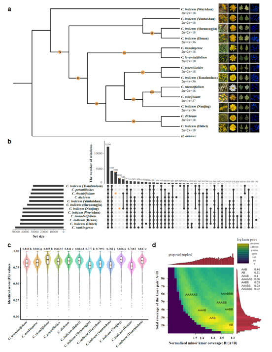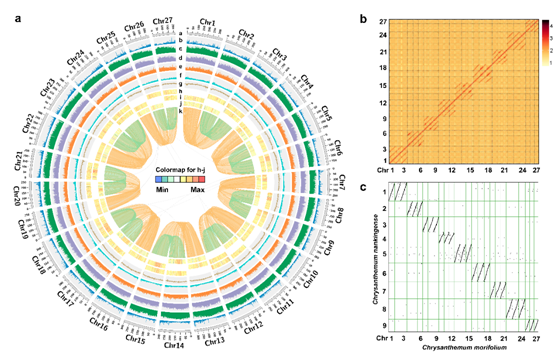 近日,太阳集团官网陈发棣团队在Nature Communications上发表了题为Analyses of a chromosome-scale genome assembly reveal the origin and evolution of cultivated chrysanthemum的研究成果。该研究破译了六倍体栽培菊花基因组,报道了国际上首个节段异源多倍体基因组(segmental allopolyploid),深入探究了栽培菊花的起源和育种历史,也为下一步解析菊花重要园艺性状(花型、花色、株型、抗逆等)形成的分子机制和定向育种奠定了基础。